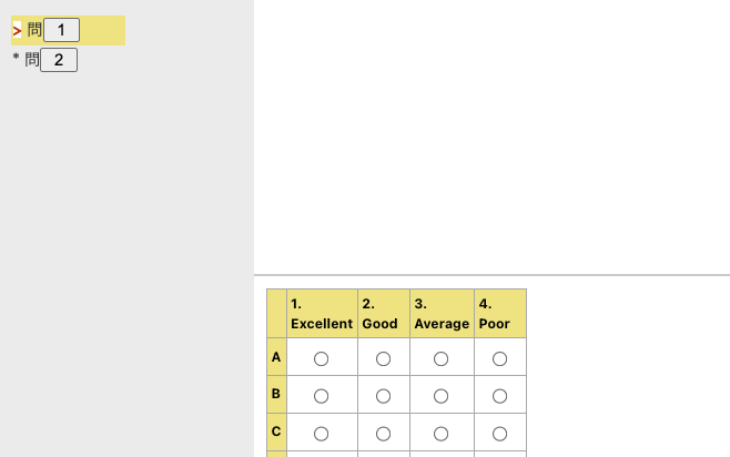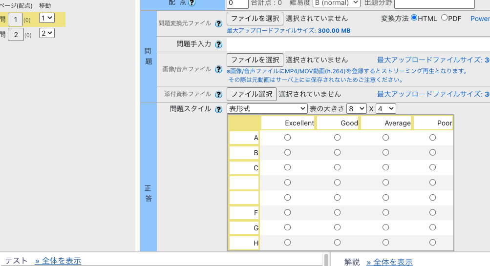 Q. 問題作成時に、回答を選ぶ文言が教材によって違うのはなぜですか? 回答: 表示される文言は、教材の種類(レポート・テスト・アンケート)によって異なります。 教材作成時に「レポート」「テスト」「アンケート」のどれで作成したかをご確認ください。 教材の種類の表示の違いは以下のとおりです: レポート:回答画面では「課題スタイル」と表示されます テスト:回答画面では「問題スタイル」と表示されます アンケート:回答画面では「設問スタイル」と表示されます